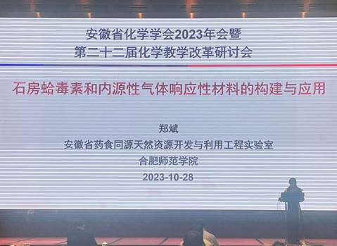 2023年10月27-29日,由安徽省化学会主办、巢湖学院化学与材料工程学院承办的“安徽省化学学会2023年会暨第二十二届化学教学改革研讨会”在巢湖召开。大会围绕高等学校化学、化工、材料及相关本科专业一流专业和一流课程的建设、实验室安全、学科发展与学位点建设、应用型人才培养质量以及课程思政等主题进行了交流和研讨,来自全省高校化学、化工相关教师及企业代表200余人出席会议,我校91久久精品无码一级毛片郑斌教授率队参加本次会议,并应邀在大会青年论坛上做学术交流。
