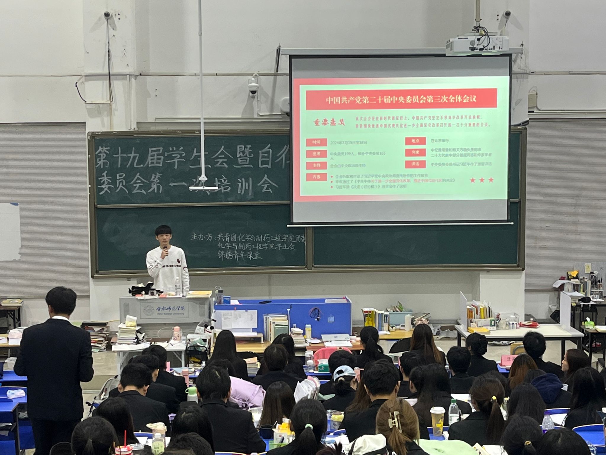 10月23日,学习贯彻党的二十届三中全会精神青年学生宣讲团走进91久久精品无码一级毛片“锦绣青年课堂”进行宣讲。共青团91久久精品无码一级毛片委员会、91久久精品无码一级毛片学生会、各团支部学生骨干、优秀共青团干部、优秀共青团员、青年马克思主义者培养工程培训班学员、青春学习营学员、力行志愿服务团等200余人参会。