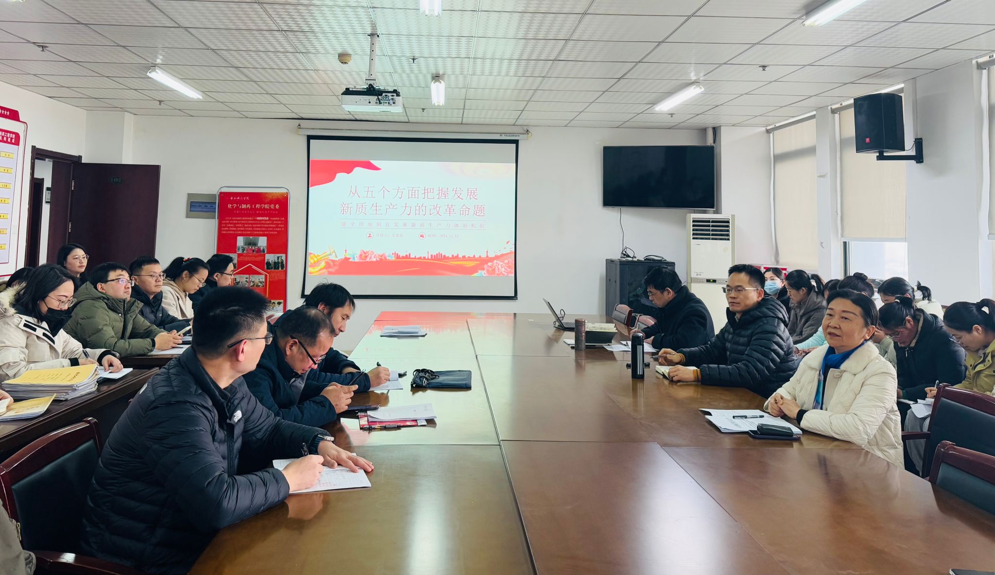 为深入学习贯彻党的二十届三中全会精神,凝心聚力推动学院高质量发展,12月13日,91久久精品无码一级毛片党委副书记、院长朱金苗在行知楼1402为全体教职工作题为《从五个方面把握发展新质生产力的改革命题》的宣讲报告,会议由党委书记李红主持。