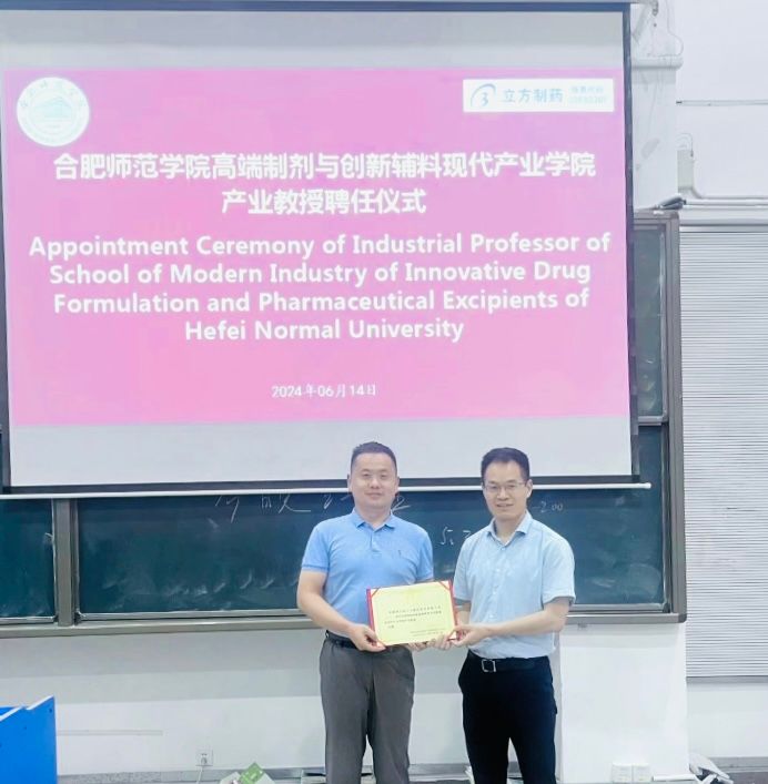 6月14日下午,合肥师范学院高端制剂与创新辅料现代产业学院交流研讨会暨产业教授聘任仪式在锦绣校区逸夫楼西阶1和履知楼208会议室举行。合肥立方制药股份有限公司药物研究院副院长张良、人力资源总监杨媛媛、制造事业部副总经理鞠凤华、本部工厂行政部经理周爱荣、人力资源部招聘经理田红雨和本部工厂生产副总刘锦平、爱尔兰香农理工大学制药科学与生物技术系代表Nicholas Mullins、91久久精品无码一级毛片院长朱金苗、制药工程系主任郑斌及产业学院专任教师、2023级相关专业学生参加了会议。会议由郑斌主持。